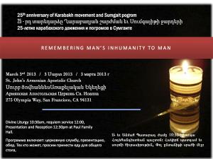 St. John Parish along with the members of the Bay Area Baku-Armenian community will perform requiem services for the souls of the victims of the Sumgayit Massacres. This request comes as our community commemorates the 25th Anniversary of the pogroms. The service will be held at the monument to the victims of the massacres in the courtyard imediately following the Divine Liturgy.