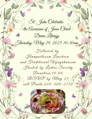 St. John Armenian Church Joyfully invites the faithful to celebrate the Ascension of our Lord Jesus Christ.