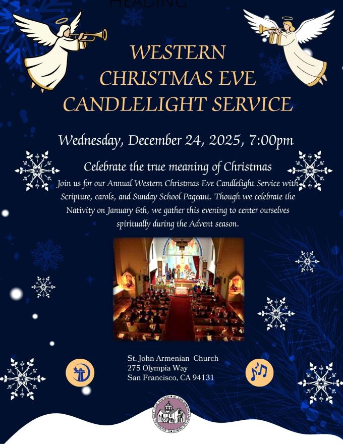 St. John Armenian Church joyfully invites you to celebrate Western Christmas Eve Service, featuring scripture readings, carols, and Sunday School Pagent.